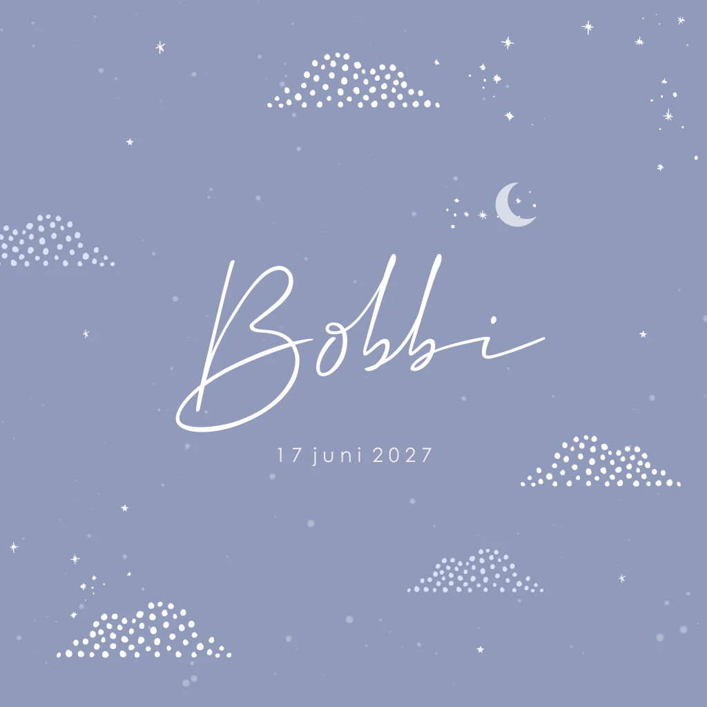 Geboortekaartje neutraal met wolkjes en een maantje