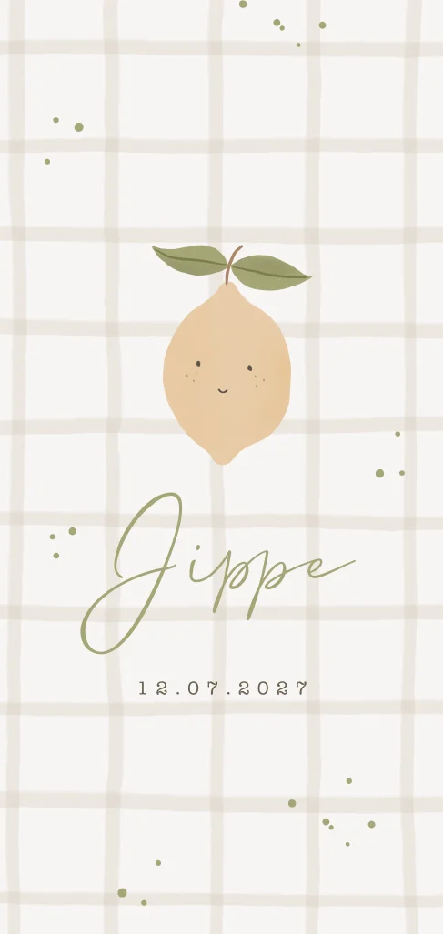 Vrolijk en zomers neutraal geboortekaartje met citroentje
