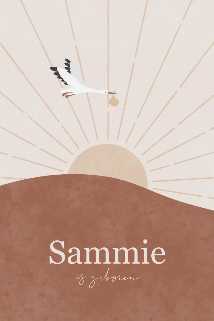 Geboortekaartje neutraal met zon en ooievaar