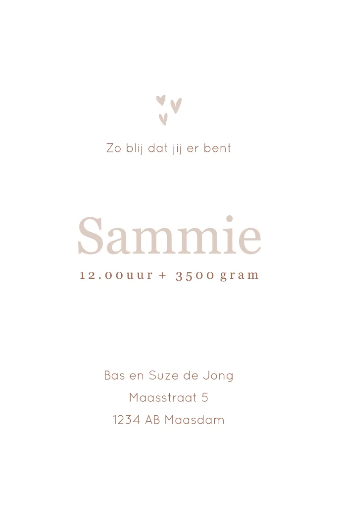 Een prachtig neutraal geboortekaartje met ooievaar, zo zoet! Iets aanpassen? Dat doe je gemakkelijk met de online editor.