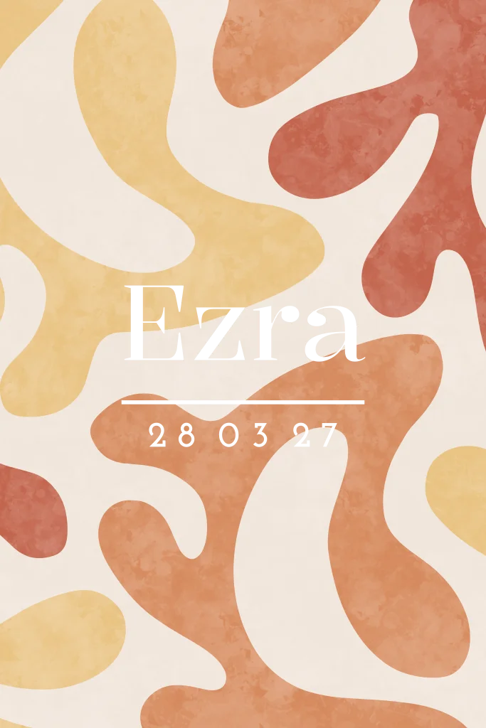 Prachtig geboortekaartje met organisch patroon in geel en terracotta tinten. De naam van je kleintje in goudfolie maakt het kaartje extra bijzonder!