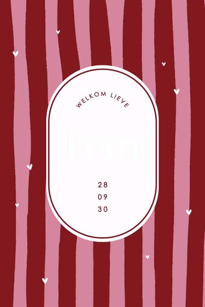 Kondig de geboorte van jullie kleintje aan met dit super trendy geboortekaartje met roze en rode strepen en afgeronde hoeken! De goudfolie geeft een luxe finish. Wil je een lettertype, kleur of ander element aanpassen? Dat kan gemakkelijk met de online editor.