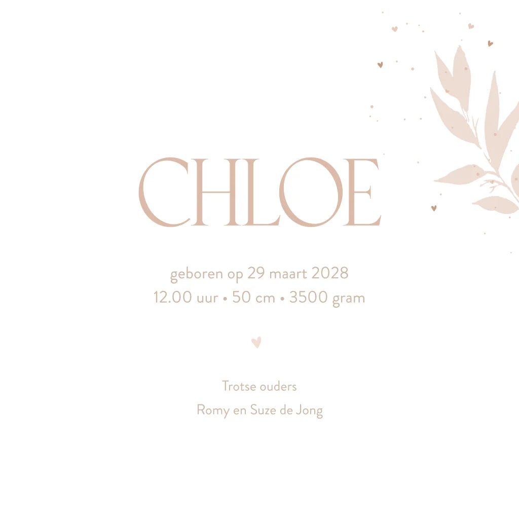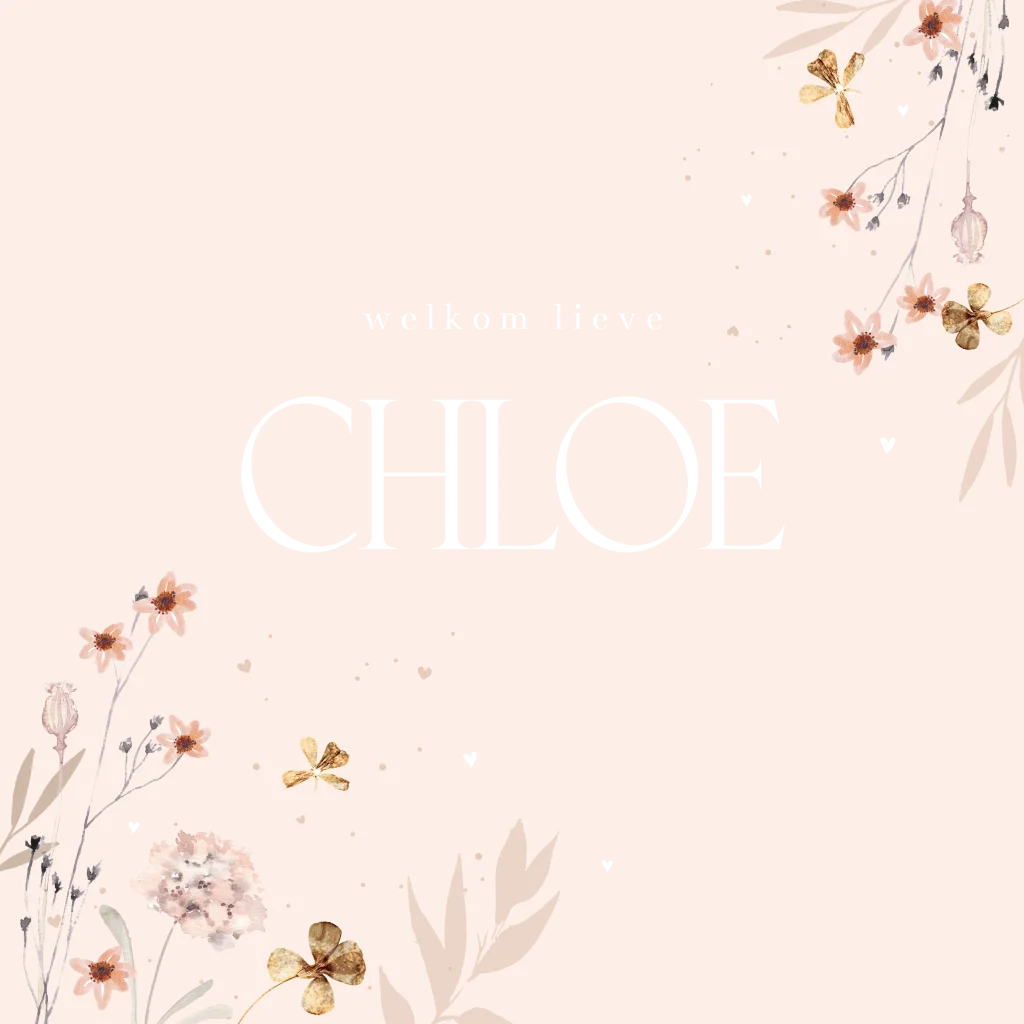 Geboortekaartje in roze tinten met roséfolie en bloemen