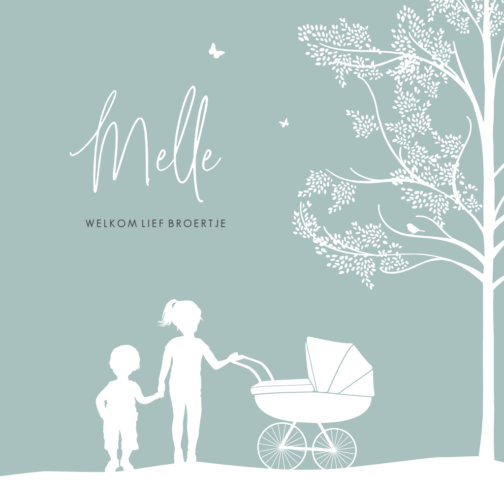 Broertje geboortekaartjes silhouet broer en zus in grijsgroen