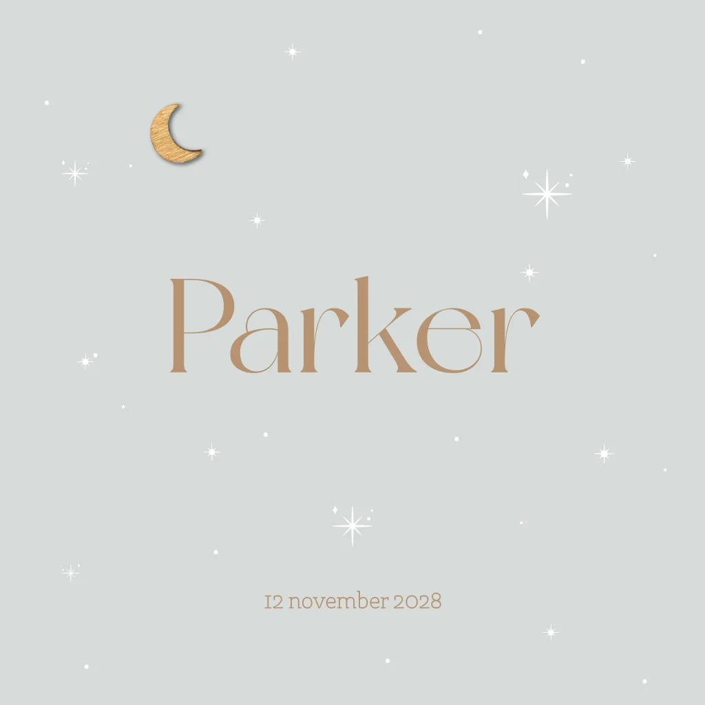 Zo dreamy, dit celestial geboortekaartje met houten maantje*! Kies heel eenvoudig afbeeldingen uit onze beeldbank. Voeg eigen tekst toe en maak een uniek geboortekaartje.