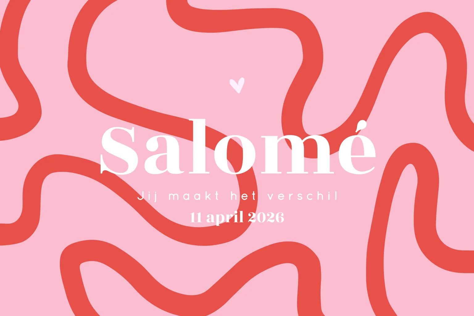 Een stoer kaartje voor de geboorte van jullie meisje. De colourblocking in roze tinten en ronde hoeken maken dit kaartje helemaal hip! Pas het lettertype of andere elementen gemakkelijk zelf aan in de editor.