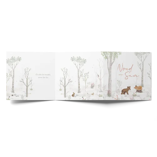 Kies voor dit originele drieluik geboortekaartje met schattig bosdieren om de geboorte van je tweeling bekend te maken. Een eigen foto maakt dit kaartje extra speciaal.