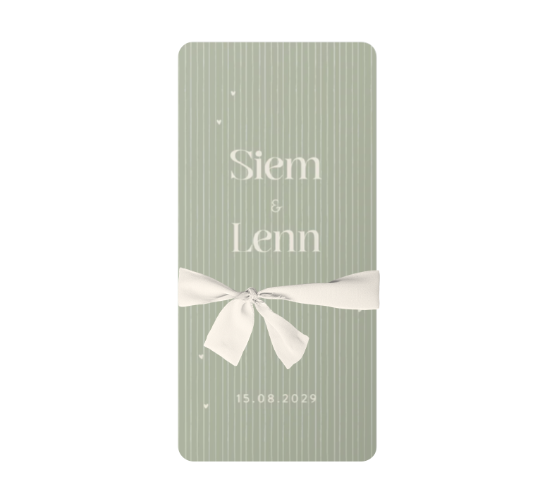 *Goed om te weten: het zijden lint wordt niet standaard meegeleverd, dit kun je zelf toevoegen tijdens het bestelproces. Je vindt alle bevestigingsmaterialen hier. Wanneer je de geboortekaartjes ontvangt, kun je het lint er zelf omheen strikken.