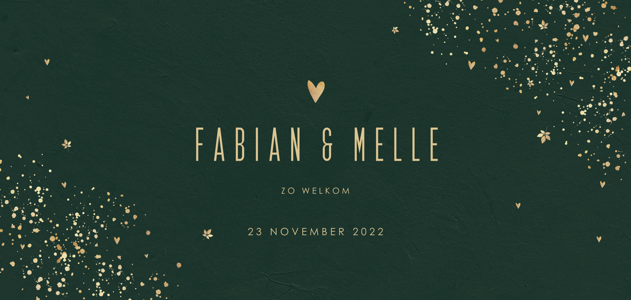 Stoer en lief geboortekaartje tweeling met mooie details van spetters, hartjes en blaadjes. Dit kaartje kan je naar wens bewerken in de editor. Uniek aan dit kaartje? De afgeronde hoeken.