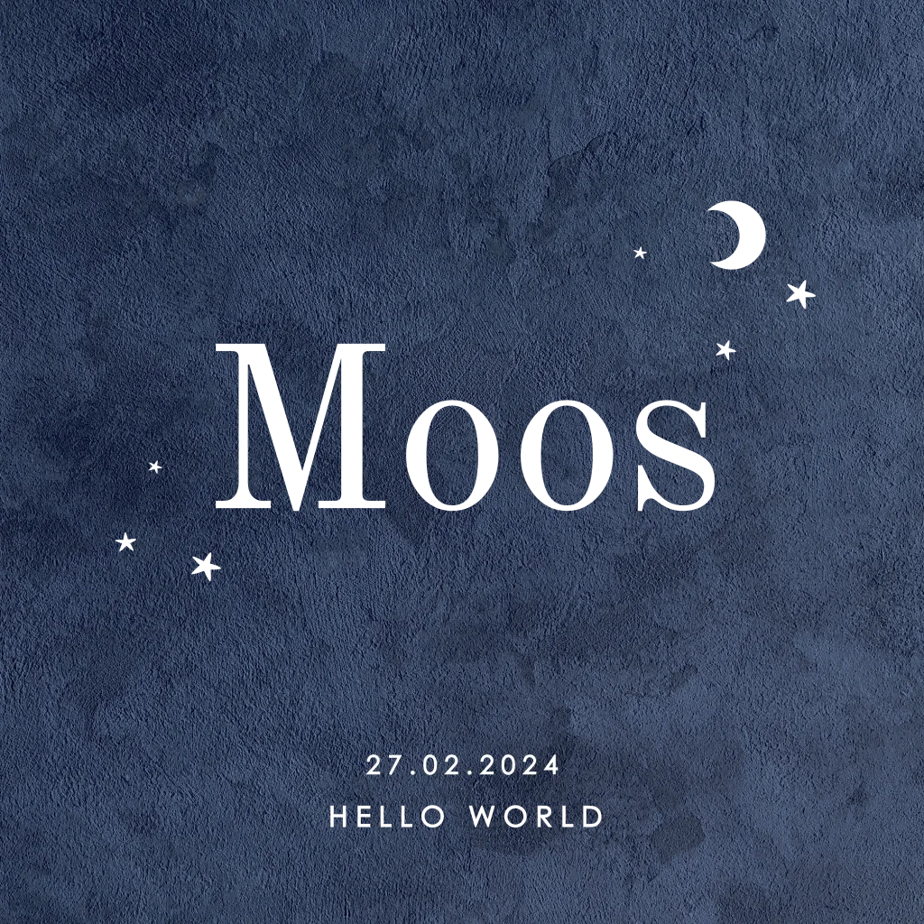 Bij de geboorte van jullie kleine mannetje, hoort een bijzonder geboortekaartje. Wat dacht je van dit kaartje in velvet look met maan en sterren in goudfolie?