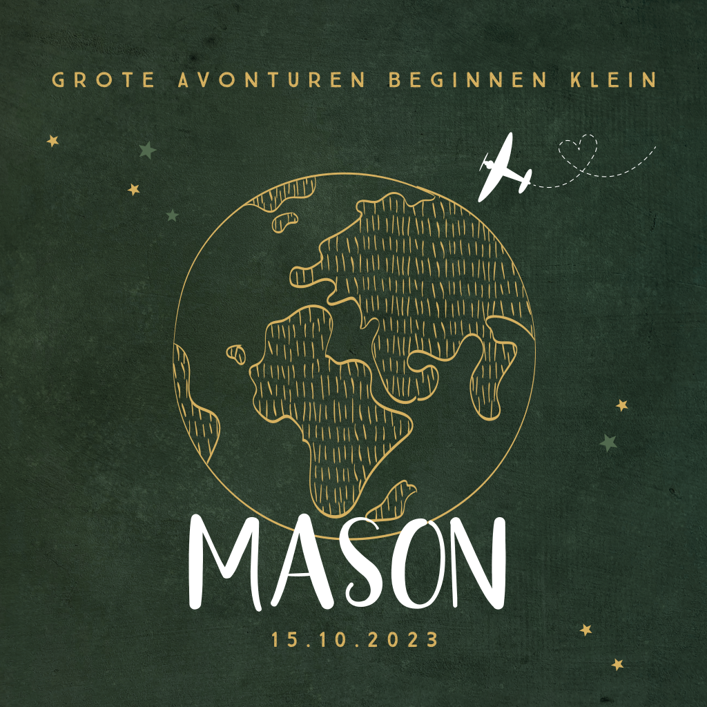 Geboortekaartje jongen wereldbol