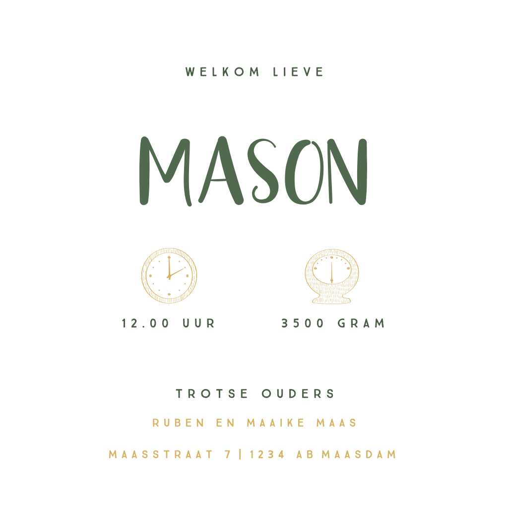 Hoe stoer is dit geboortekaartje? Kies voor jullie kleintje een vintage geboortekaartje en maak het helemaal van jullie door het toevoegen van bijvoorbeeld illustraties uit de beeldbank. En met een prachtige one-liner maak je de aankondiging compleet.