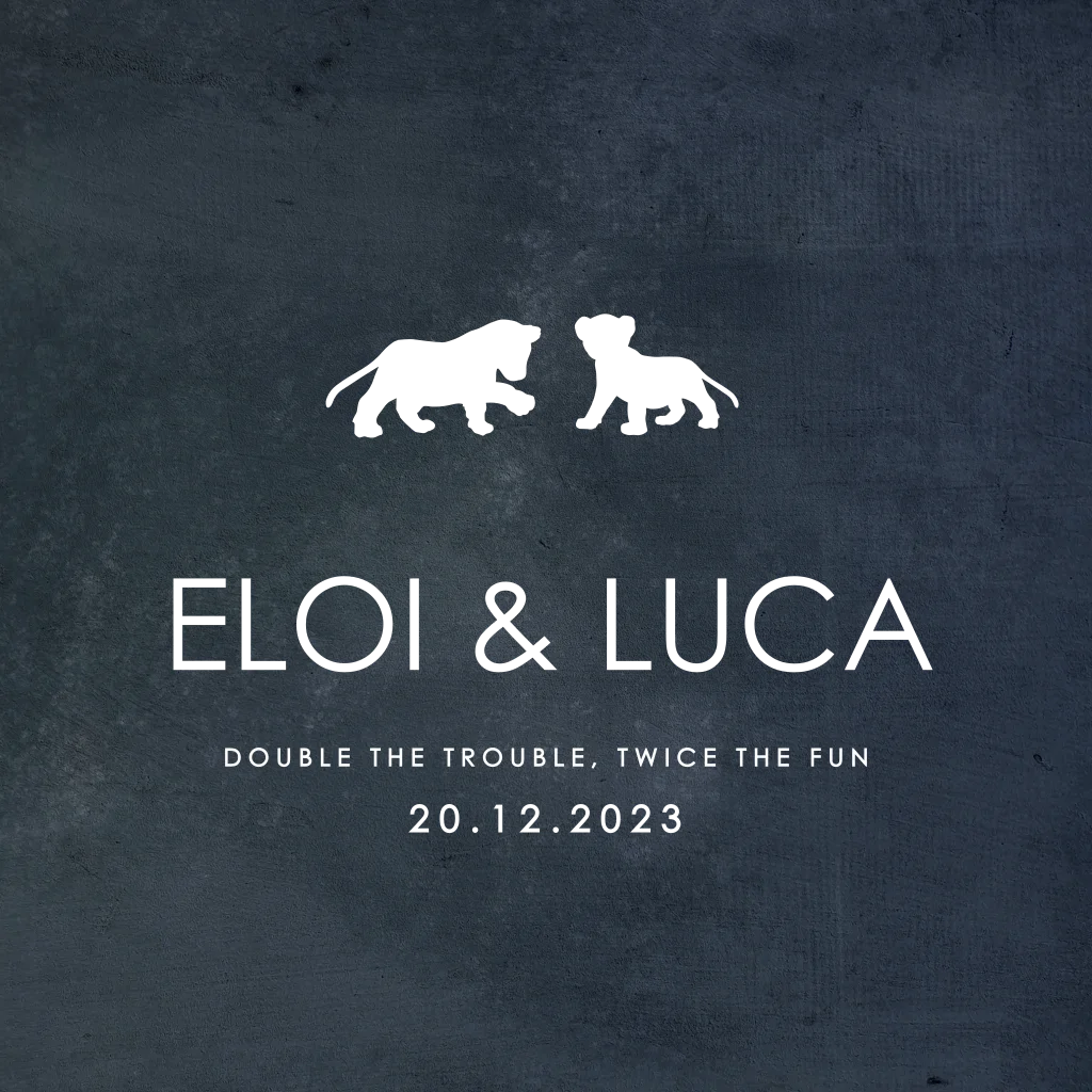 Wat een stoer kaartje is dit! Speciaal voor jullie tweeling ontwierpen wij dit geboortekaartje. Het gebruik van de robuuste achtergrond en de goudfolie maken dit kaartje uniek.