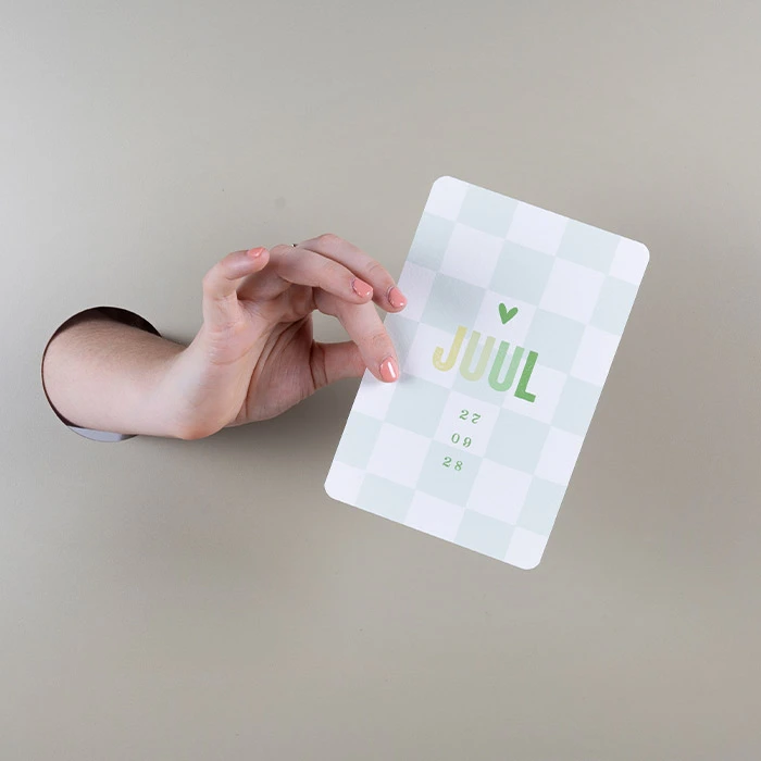 Geboortekaartje met lichtgroene ruiten