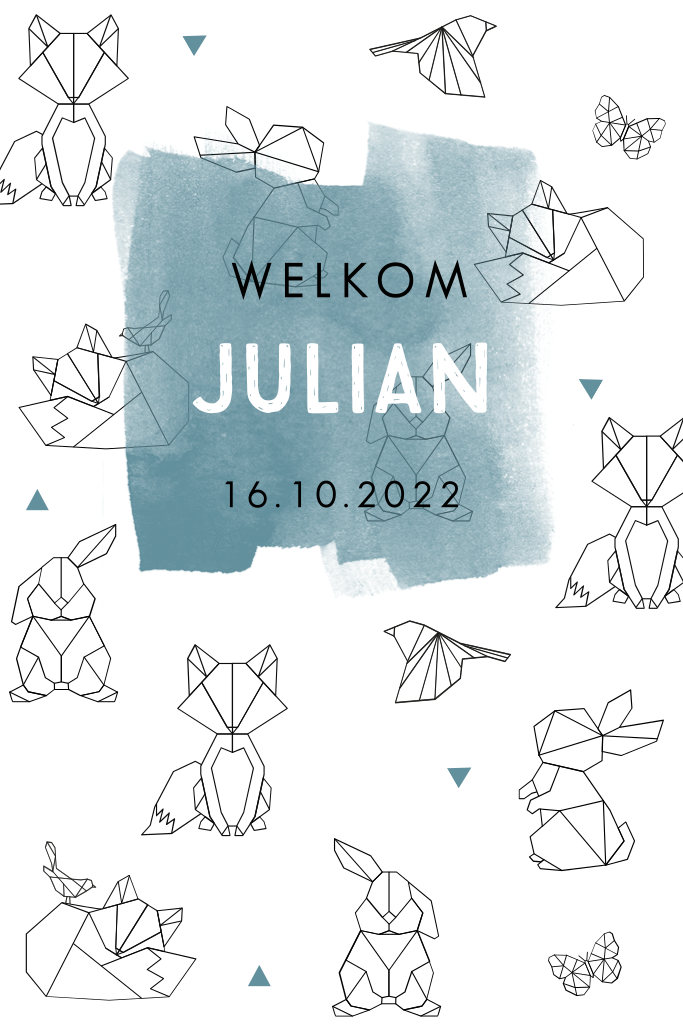 Hip geboortekaartje zoon met trendy diertjes geometrisch