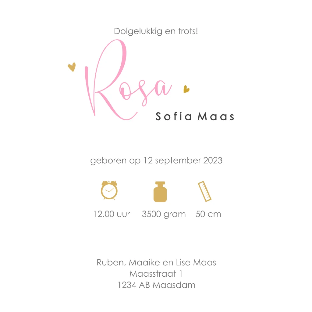 Dit zoete kaartje voor een dochter is handgetekend en een leuk kaartje om de geboorte aan te kondigen bij familie en vrienden.
