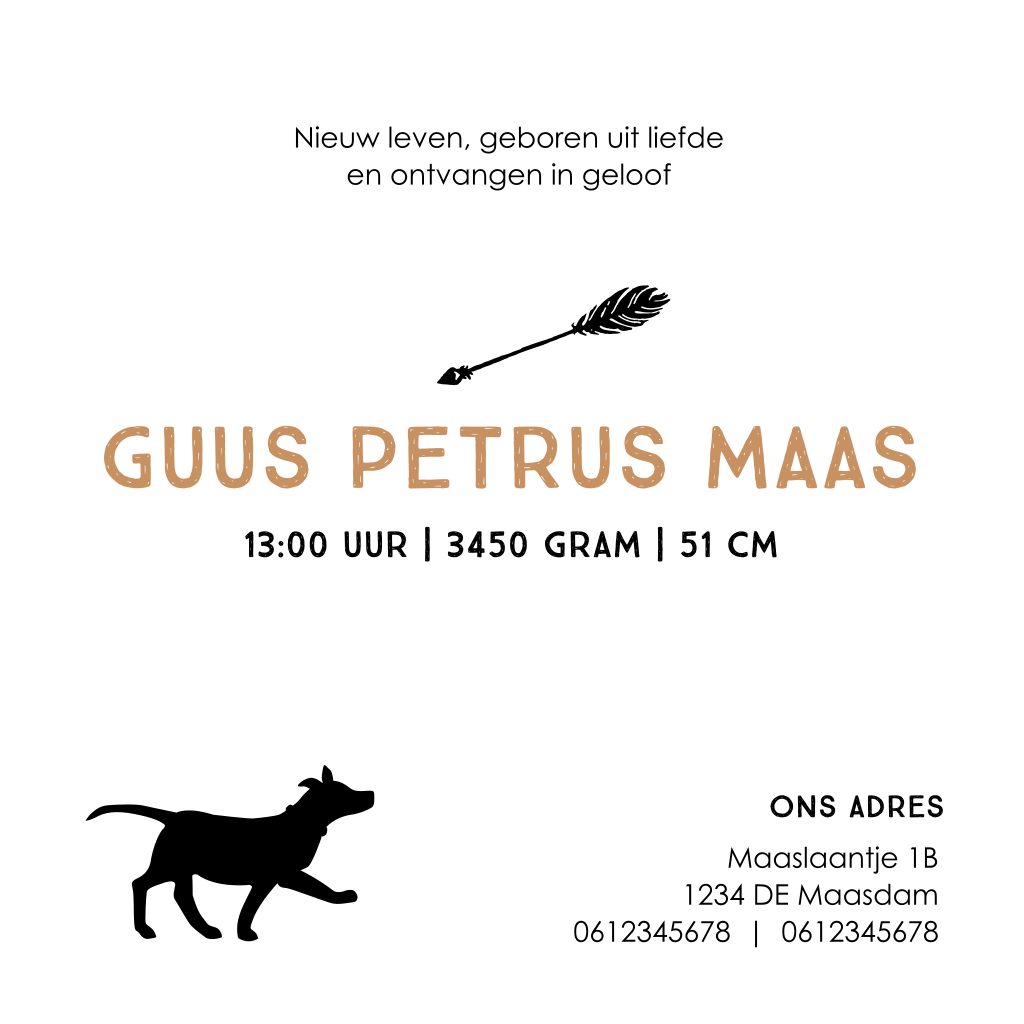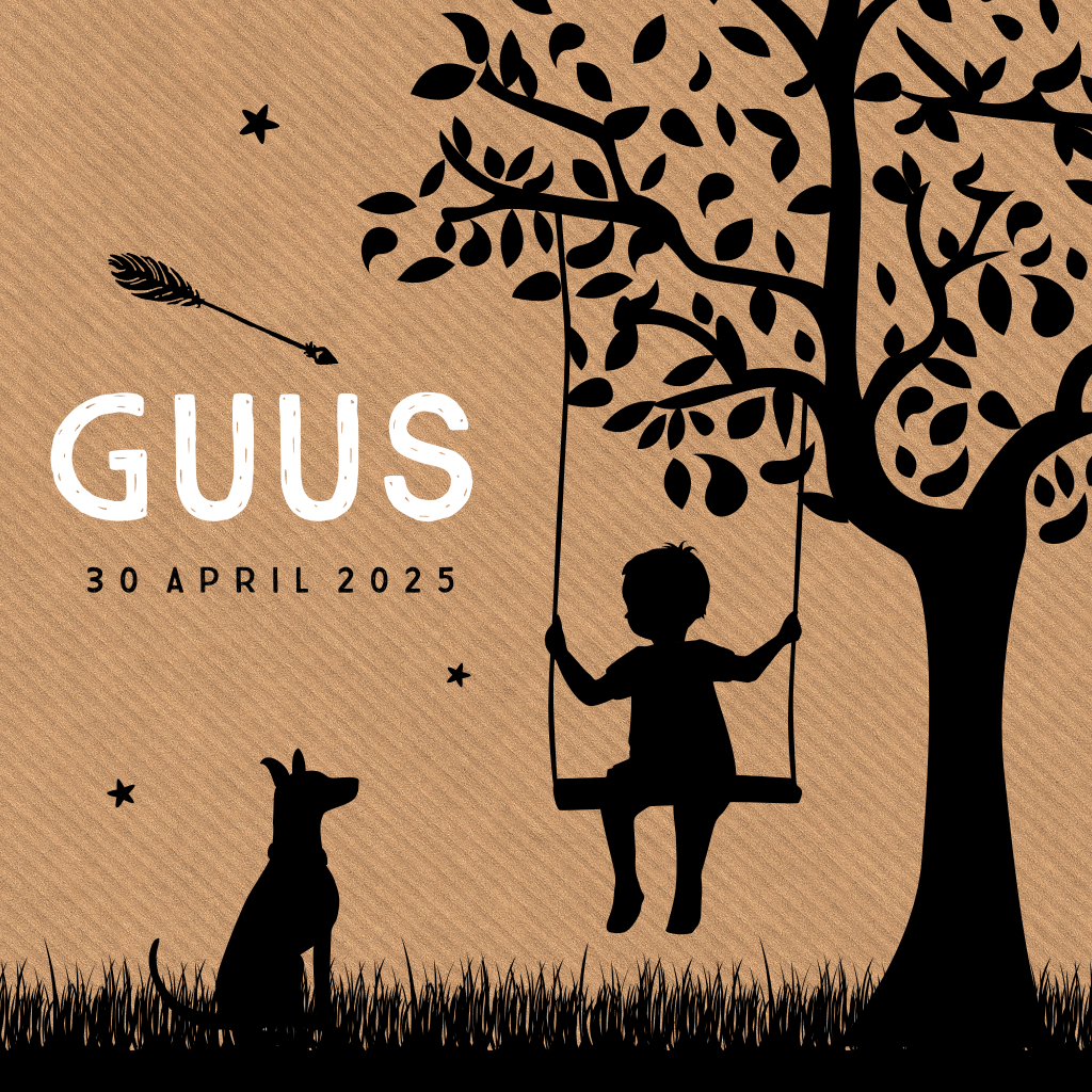 Op een hippe manier kondig je de geboorte aan van jullie zoontje. We hebben dit kaartje gemaakt met een herdershond, natuurlijk maken we graag een illustratie op maat van jullie huisdier. Stuur ons een mailtje met jullie wens!