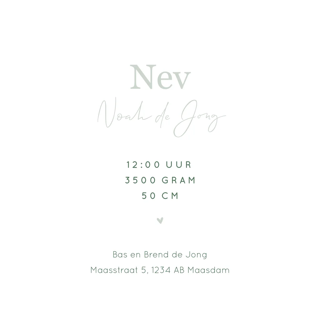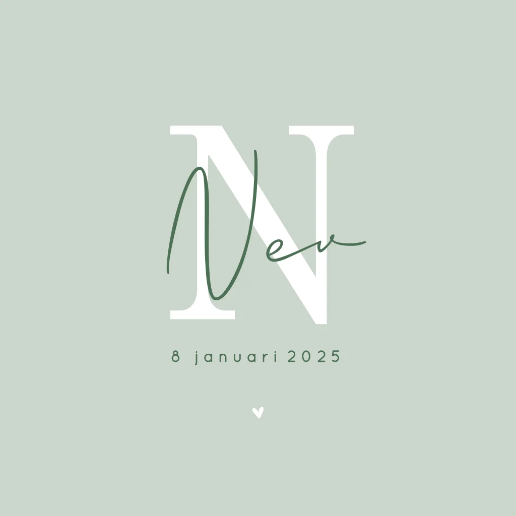 Een prachtig geboortekaartje voor een jongen met initiaal en sierletter. Zo stijlvol! Wij hebben gekozen voor groene tinten, liever andere kleuren? Dit kun je heel gemakkelijk zelf aanpassen.