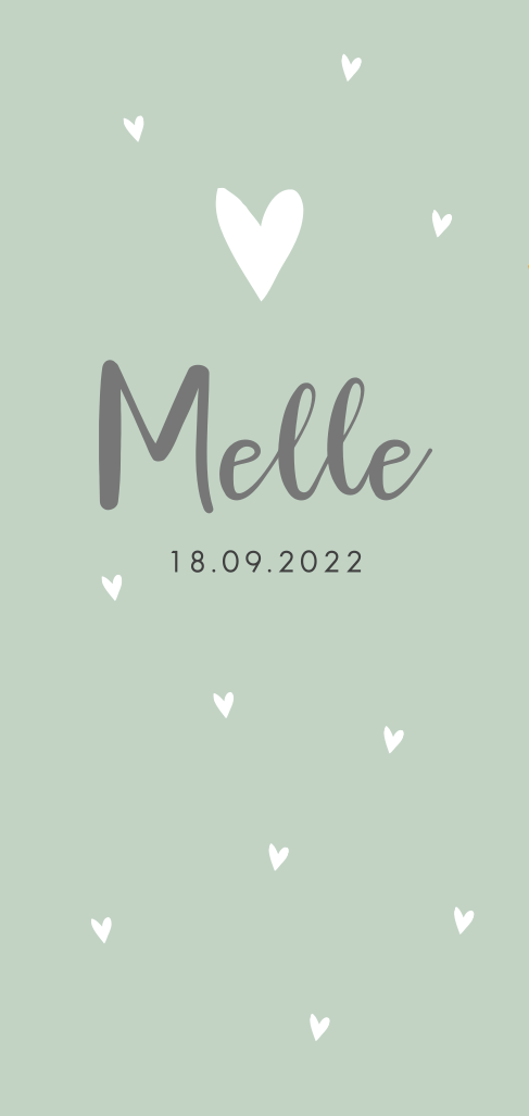 Lief babykaartje zoon in mintgroen, staand enkel met kleine hartjes in wit. Mooi op natuurkarton, witte envelop en sluitsticker hart mintgroen.