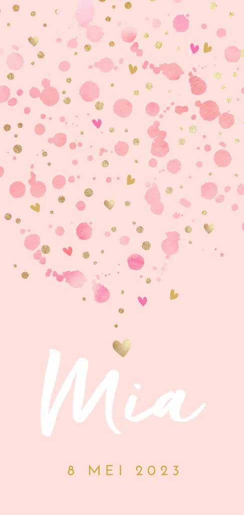 Prachtig ontwerp in roze tinten en kleine gouden details. Maak een proefdruk op oud-hollands en combineer met een gouden envelop. Zo lief!