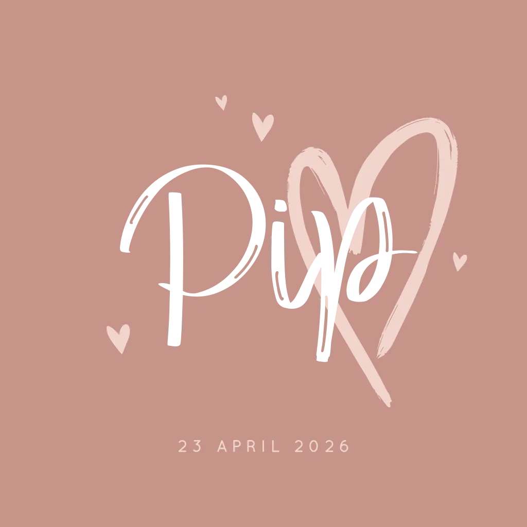 Hip geboortekaartje voor meisje met hartjes en naam in goudfolie. Liever de naam in rosé- of goudfolie? Dit pas je gemakkelijk zelf aan in onze editor.