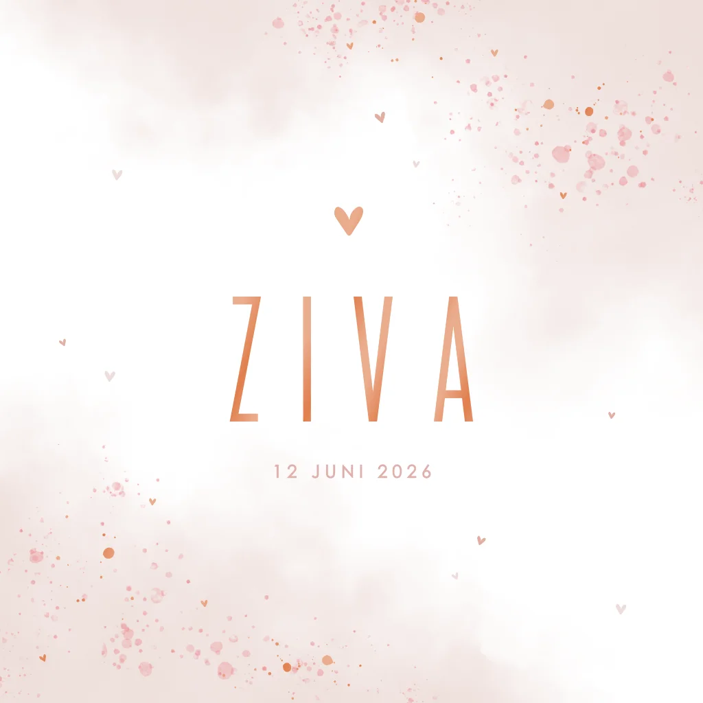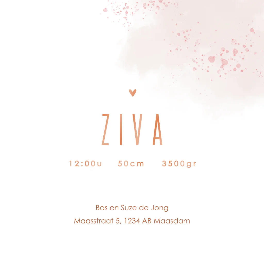 Bij de geboorte van jullie dochter, hoort een speciaal geboortekaartje. Wat dacht je van dit hippe geboortekaartje met watercolor en spetters?