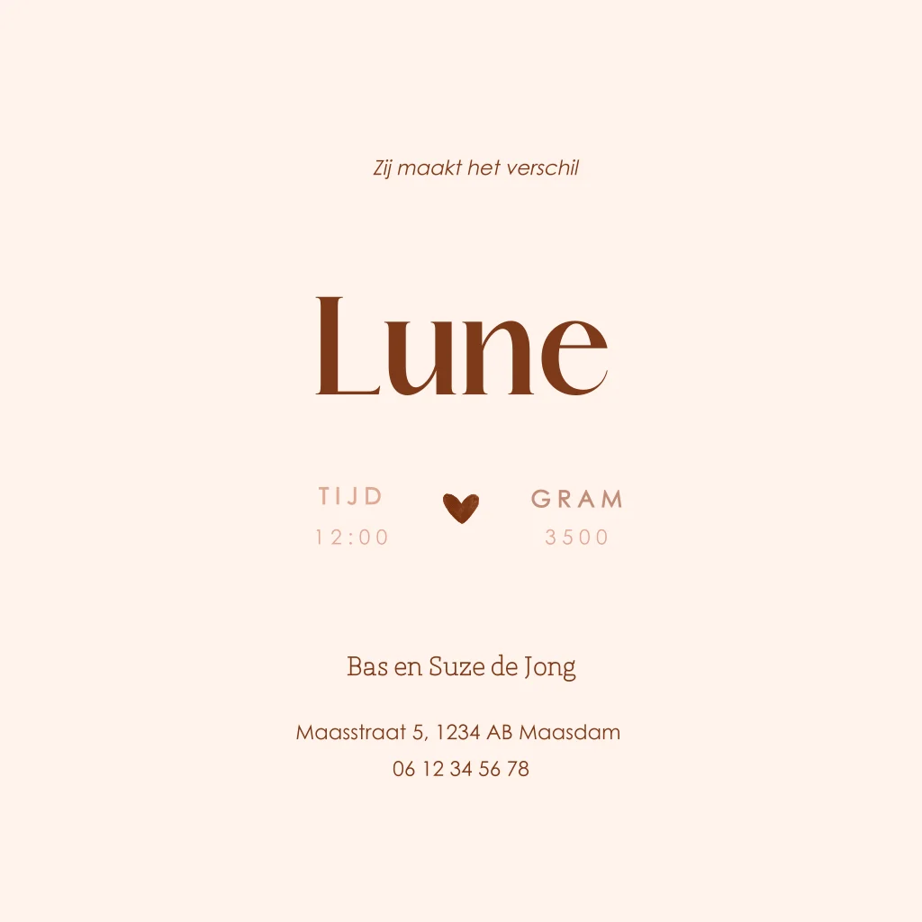 Hoogglans geboortekaartje met watercolour in aardetinten