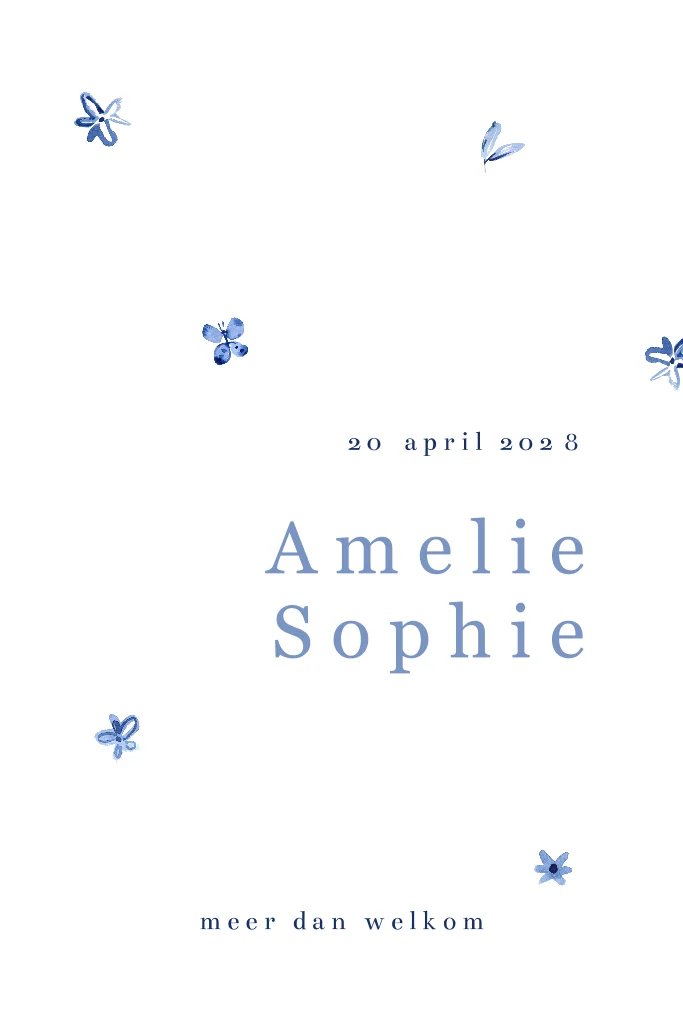 Klassiek geboortekaartje met blauwe bloemetjes en vlindertjes