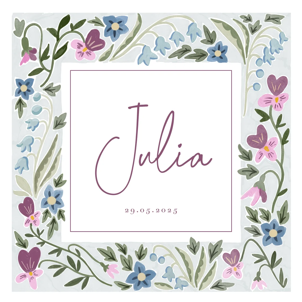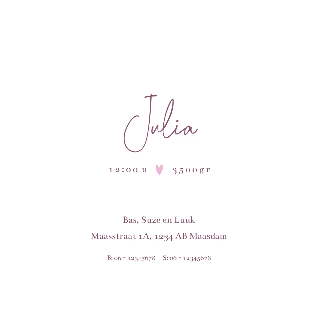 Goed om te weten: dit design bevat een kader. Omdat de kaarten na het drukken op een groot vel pas worden uitgesneden op het juiste formaat, kan het zijn dat het kader íetsje smaller of breder uitvalt. Dit gaat slechts om een paar millimeter, maar we willen het wel graag vermelden.