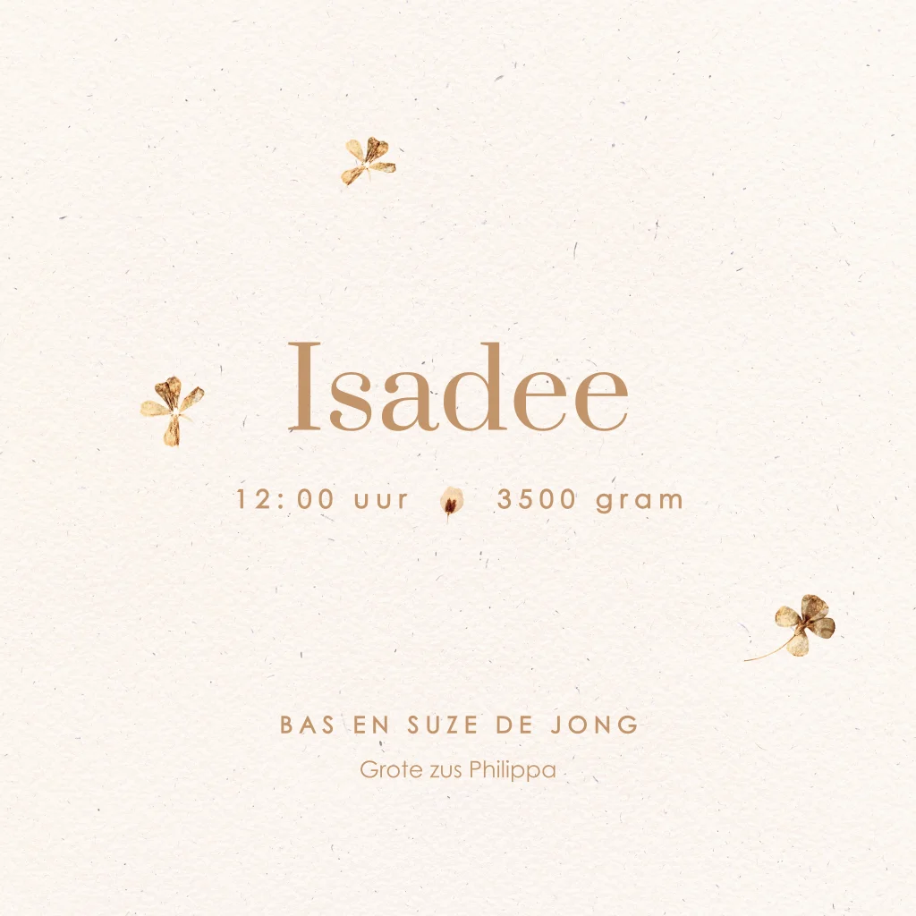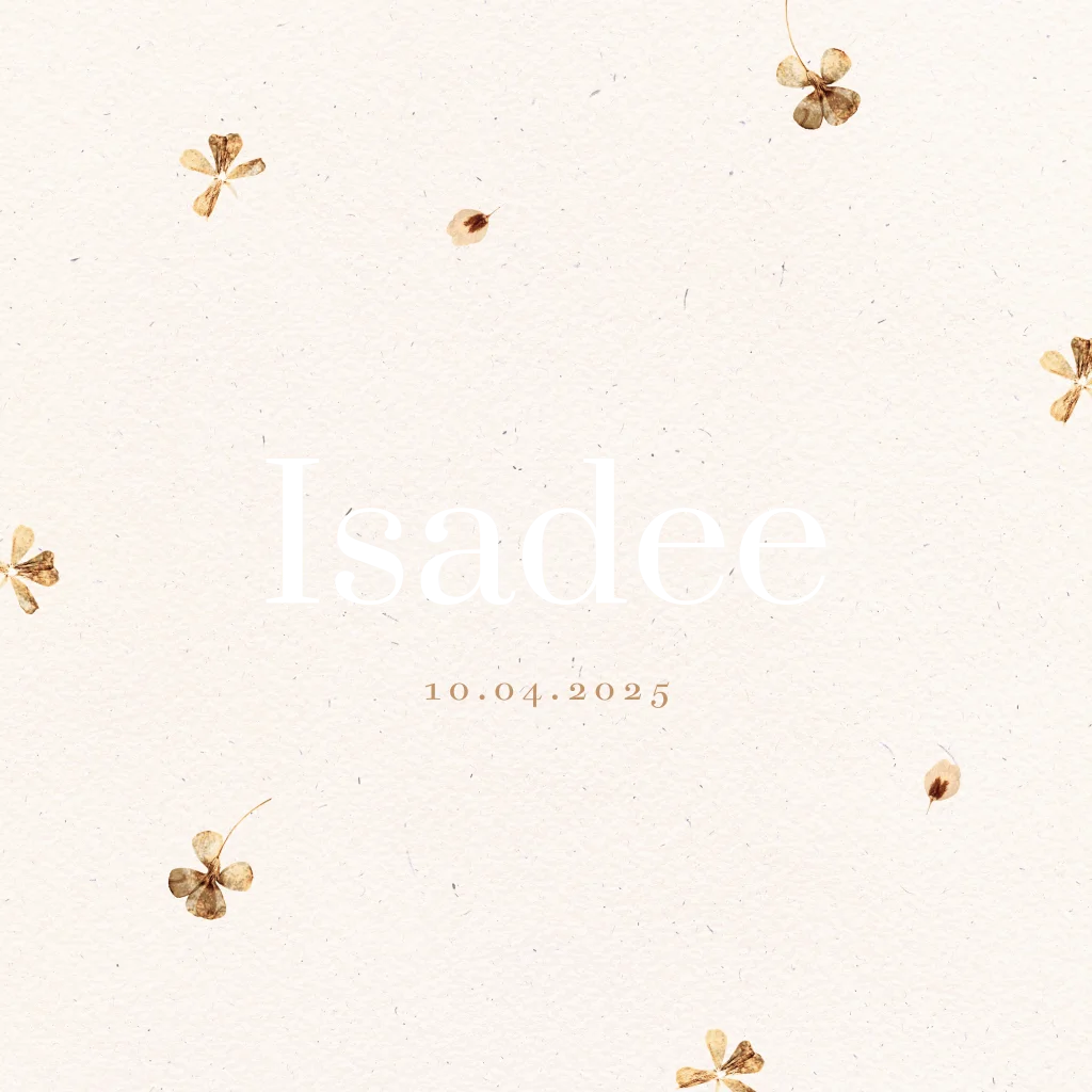 Een geboortekaartje met bloemen volgens de laatste trends. De droogbloemen en goudfolie geven dit kaartje een lieve en luxe uitstraling.