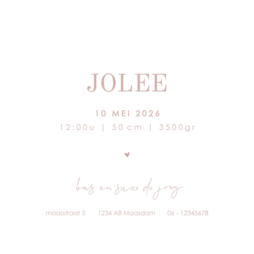 Goed om te weten: de strikjes worden niet standaard meegeleverd, deze kun je zelf toevoegen tijdens het bestelproces. Je vindt alle strikjes hier. Wanneer je de geboortekaartjes ontvangt, kun je de strikjes zelf opplakken.