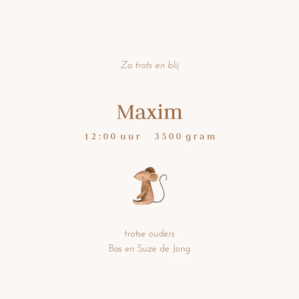 Hoera, er is een wondertje geboren! Maak de geboorte van jouw kindje bekend met dit klassieke geboortekaartje met illustratie van een schattig muisje. De foto aan de binnenkant maakt het kaartje extra persoonlijk.