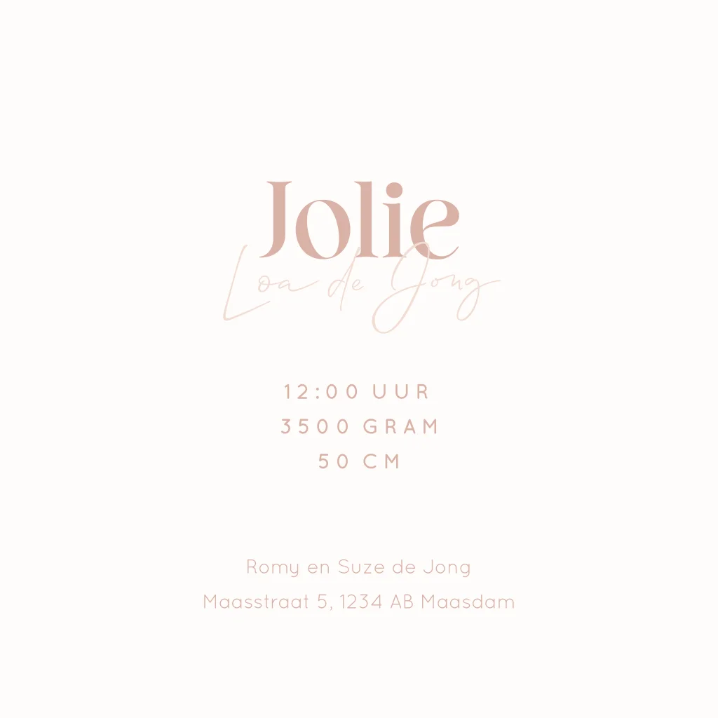 Goed om te weten: het zijden lint wordt niet standaard meegeleverd, dit kun je zelf toevoegen tijdens het bestelproces. Je vindt alle bevestigingsmaterialen hier. Wanneer je de geboortekaartjes ontvangt, kun je het lint er zelf omheen strikken.