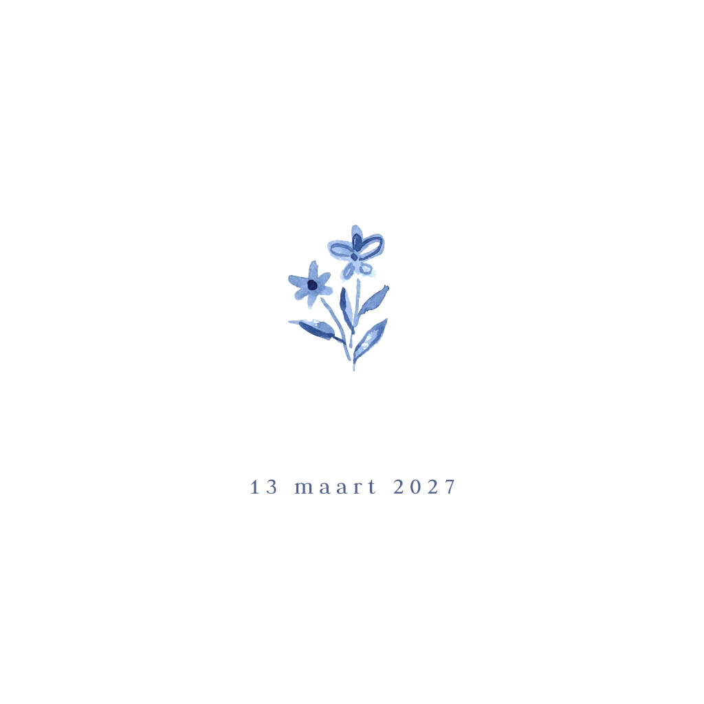 Klassiek geboortekaartje in wit en blauw met goudfolie