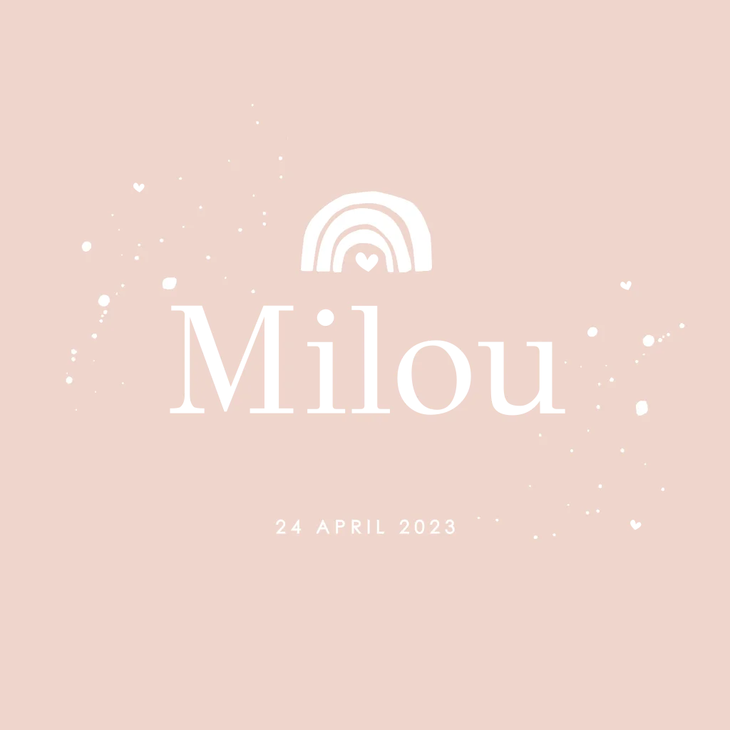 Bij de geboorte van jullie meisje hoort een bijzonder geboortekaartje. Wat dacht je van dit stijlvolle kaartje met lief regenboogje? De elementen in goudfolie maken het kaartje heel speciaal. Liever zilver- of roséfolie? Dat pas je heel makkelijk zelf aan in de editor!