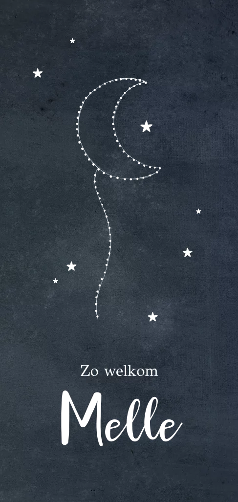 Ga voor bijzonder en kies voor een geboortekaartje waar de naam de hoofdrol speelt. De donkere achtergrond in combinatie met een maan lichtslinger maken dit kaartje super speciaal.