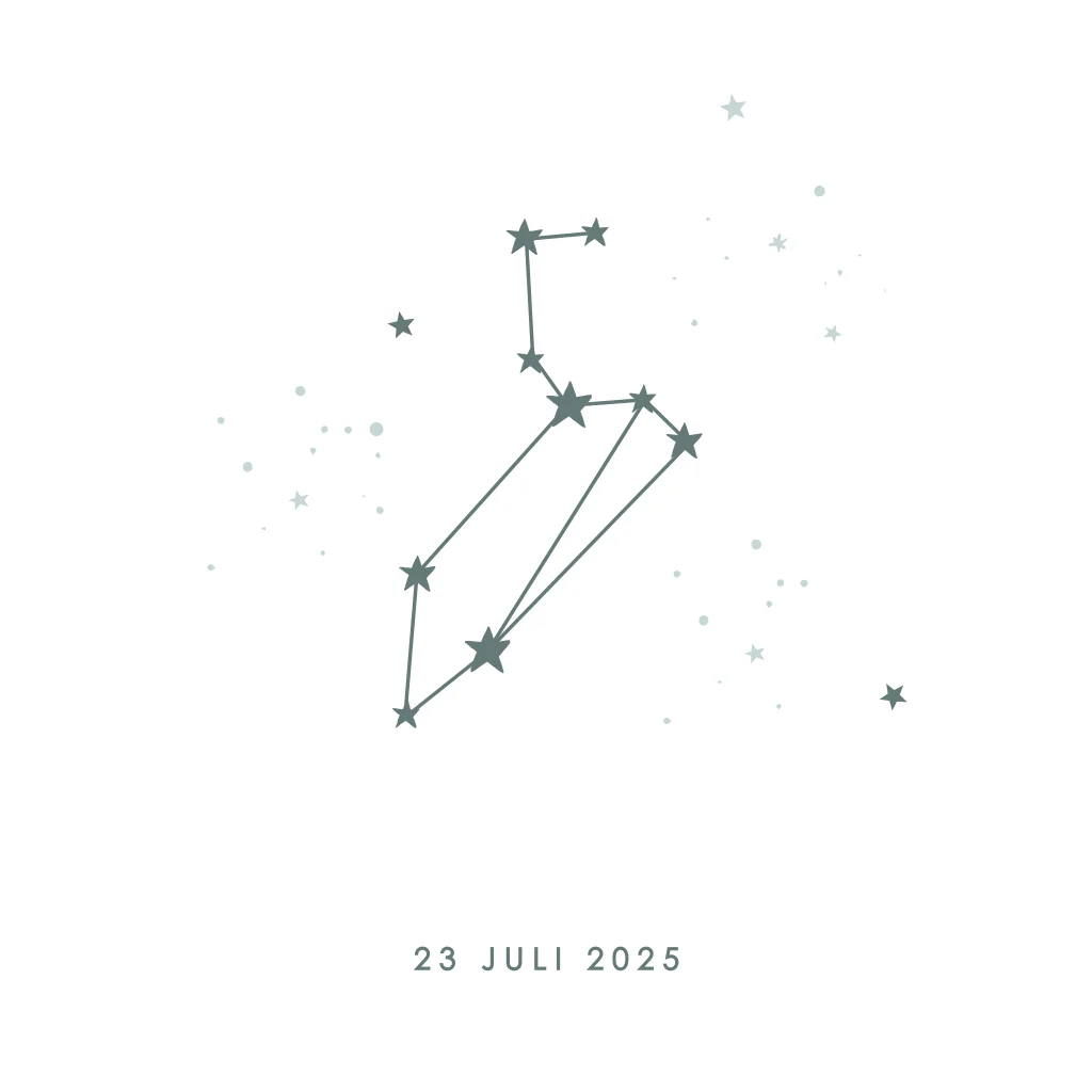 Wil jij dit geboortekaartje laten personaliseren met het sterrenbeeld van jouw eigen kindje? Vul het aanvraagformulier op deze pagina in.