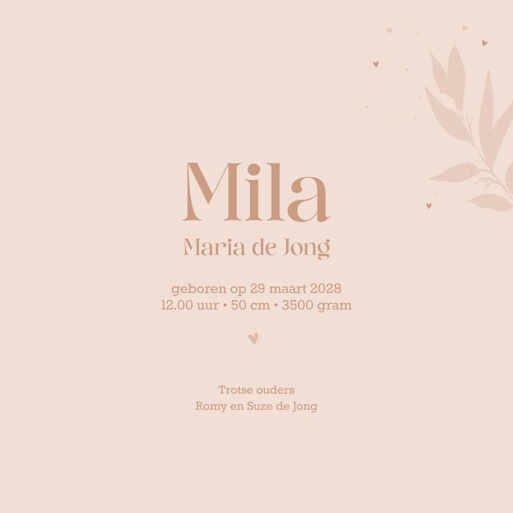 Wat een onwijs lief geboortekaartje! Heb je de letters in roséfolie al gezien? Dit maakt het kaartje helemaal af.