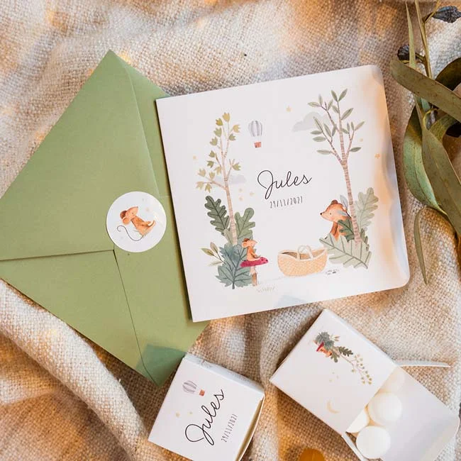 Dit geboortekaartje maakt deel uit van een complete set in deze stijl.