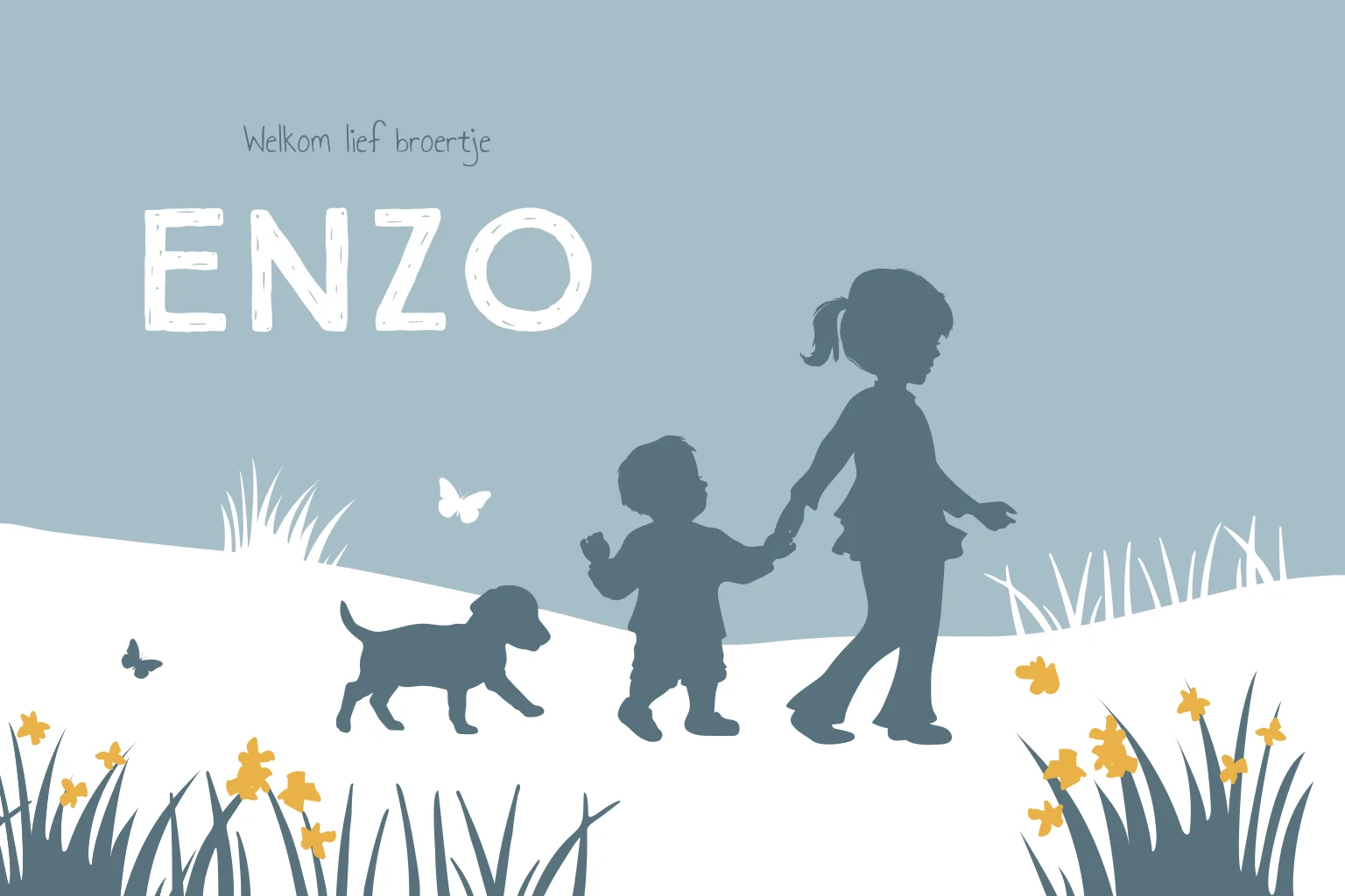 Hoe lief is dit geboortekaartje met silhouetjes? Kies voor jullie tweede kindje een kaartje met silhouetjes. Is jullie gezinssamenstelling anders? Mail naar de studio, zodat we je verder kunnen helpen met aangepaste silhouetjes.