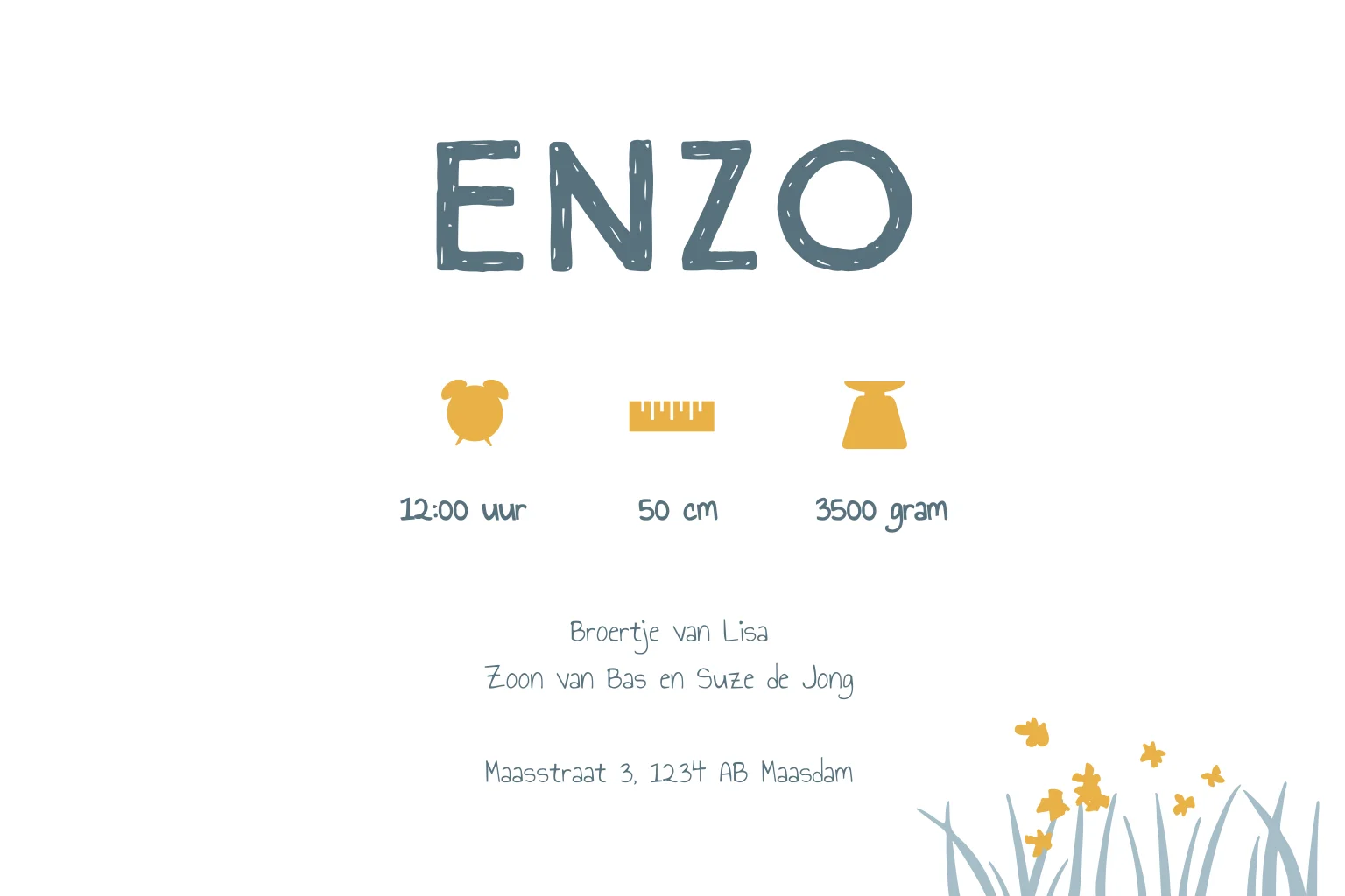 Helemaal weg van dit ontwerp? Vraag het geboortekaartje ook als geboortebord aan en show het ontwerp aan de hele buurt!