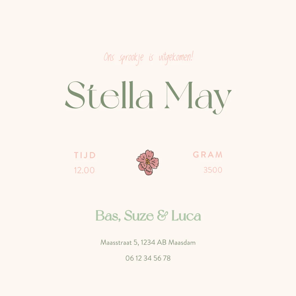 Dit geboortekaartje maakt deel uit van een complete set in deze stijl.
