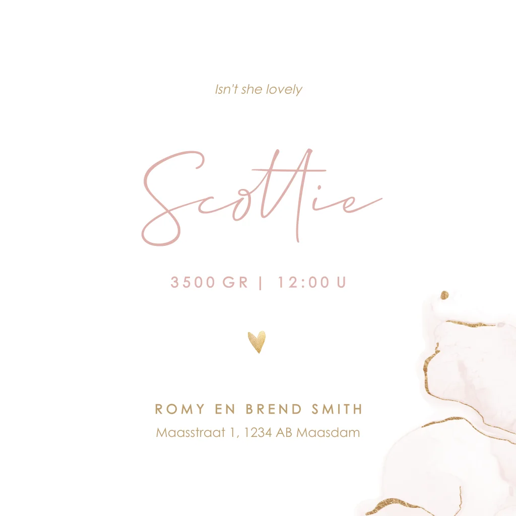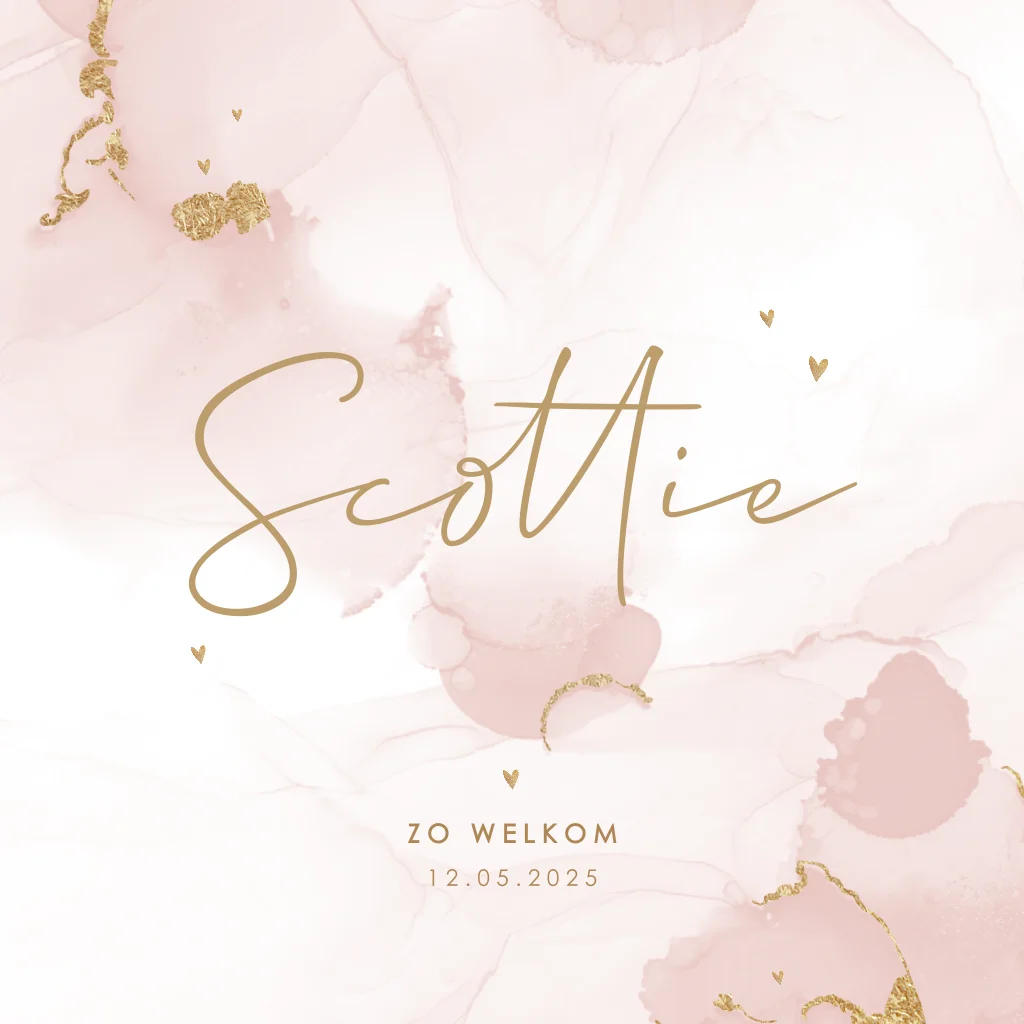 Hip en lief geboortekaartje voor een meisje met marmer look