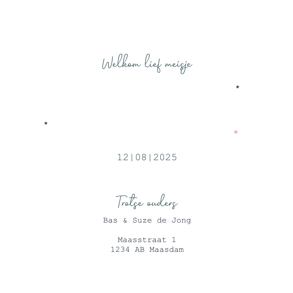 • Wij vinden een oudroze envelop heel mooi passen bij dit geboortekaartje.