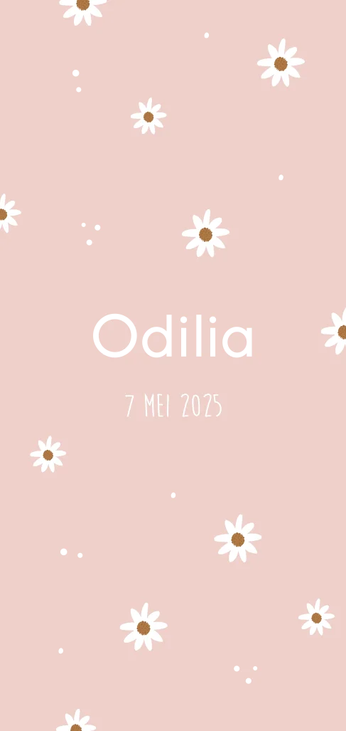 Wat een lief geboortekaartje is dit, wij zijn er helemaal weg van. Het geboortekaartje heeft een schattige madeliefjes, dit combineren we met goudfolie. Wist je dat ronde hoeken ook heel mooi bij dit kaartje passen? Bekijk het zelf door het aan te passen in de editor.