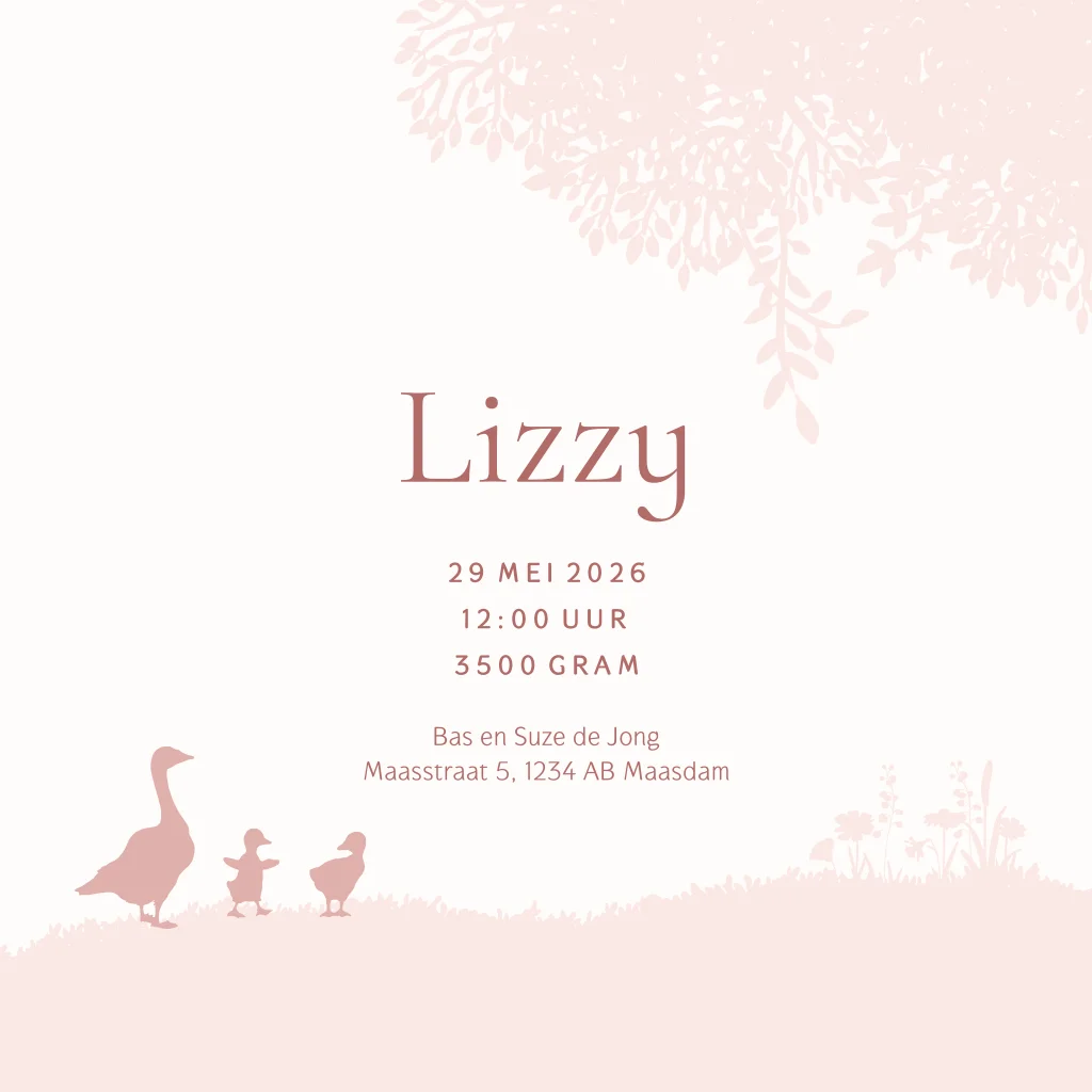 Hoe lief is dit geboortekaartje met silhouetjes? Kies voor jullie dochtertje een kaartje met silhouet en diertjes. Is jullie gezinssamenstelling anders? Mail naar de studio, zodat we je verder kunnen helpen met aangepaste silhouetjes.