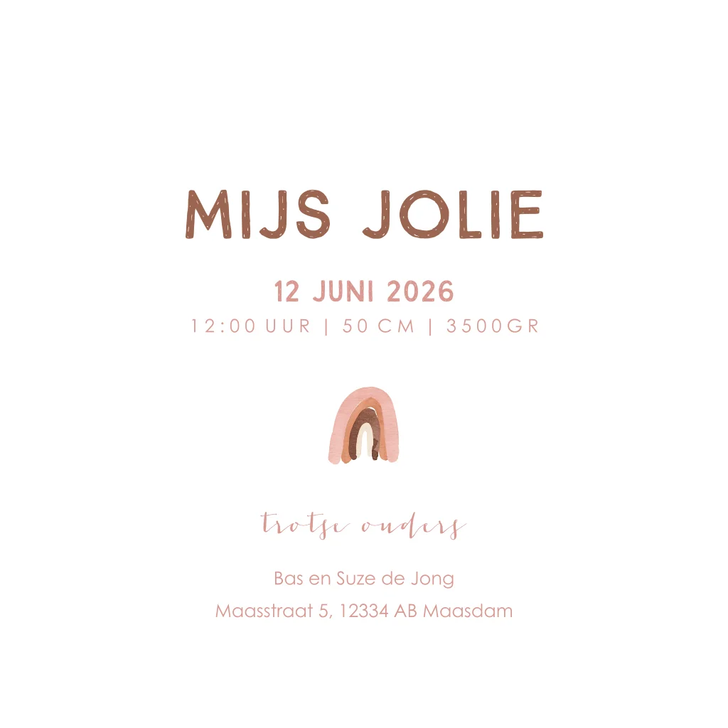 Ga voor bijzonder en kies voor een geboortekaartje waarbij de regenboog de hoofdrol speelt. De lieve watercolor illustraties maken dit een onwijs zacht en lief kaartje.