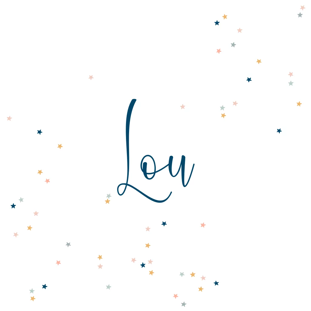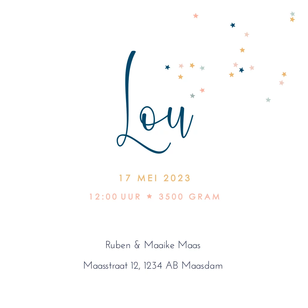 Een clean en lief geboortekaartje meisje met kleine sterretjes in trend kleuren. Maak een keuze uit één van onze papiersoorten en bestel een proefdruk.