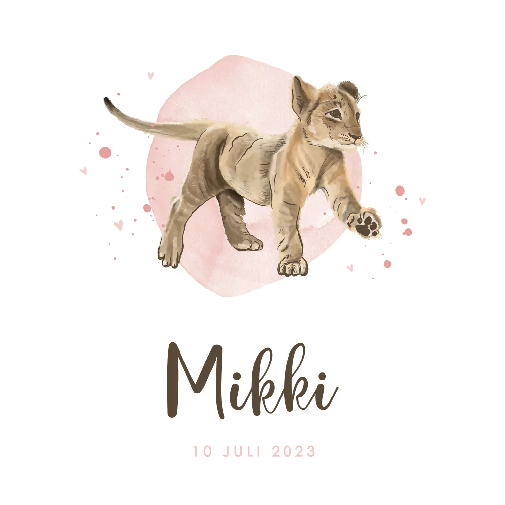 Wat een stoer kaartje is dit! Speciaal voor jullie kleine meid, ontwierpen wij dit geboortekaartje. Het geschilderde welpje maakt dit kaartje uniek, de roze tinten geven een lieve touch.