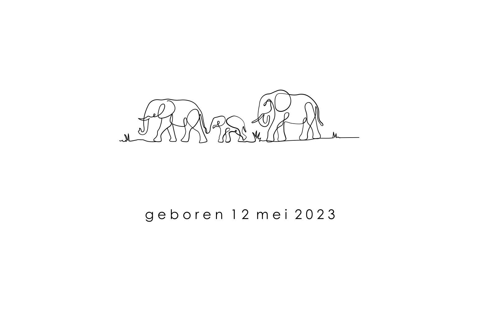 Wat een lief kaartje is dit! Speciaal voor jullie eerste kleintje, ontwierpen wij dit geboortekaartje. De oneliner illustratie met familie olifantjes in roséfolie maakt dit kaartje uniek.
